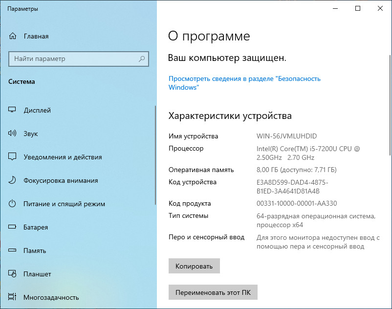 | Процесор (модель) | i5-7200U |