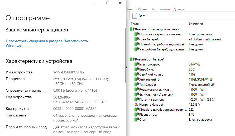 | Відеокарта (модель/об'єм) | Intel UHD Graphics 620 |